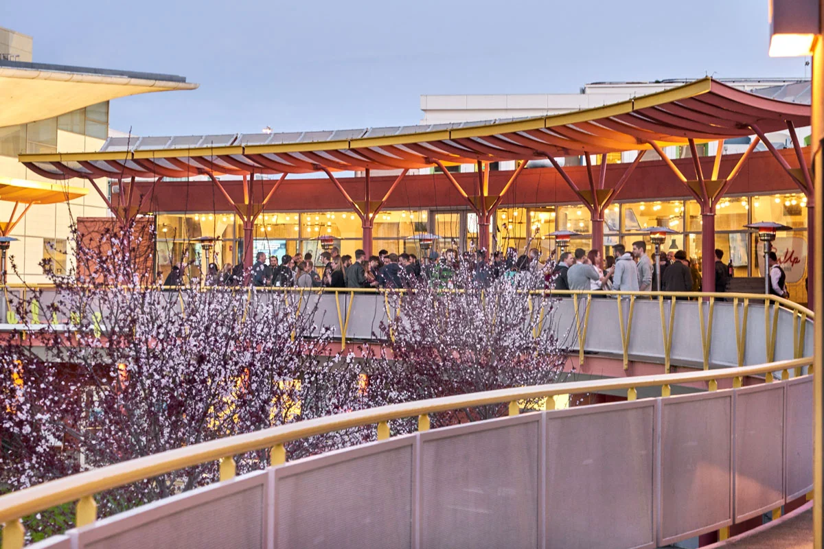 The VERANDA is an event space that marries an indoor venue with an expansive outdoor terrace. Enclosed entirely in glass, the VERANDA opens up to 5,000 square feet of terrace behind Moscone South overlooking Yerba Buena Gardens and the San Francisco skyline.